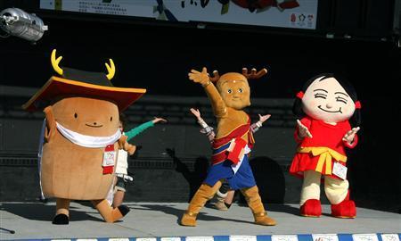 奈良の3キャラ一緒にダンス 平城遷都1300年祭に向け協調アピール?