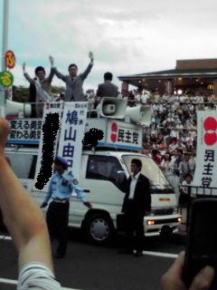 次期総理大臣(?)の鳩山由紀夫代表が来られるということで、「どれどれ、次の日本のリーダーというのはどういった顔をしとる」と言わんばかりにミーハーってきました。