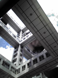 あと、フジテレビ本社も見学。ここもすごい人でしたね。そしてアノ球体も見られて満足(笑)。ちょっと写真の位置は微妙ですが、これは下から撮ったものです。